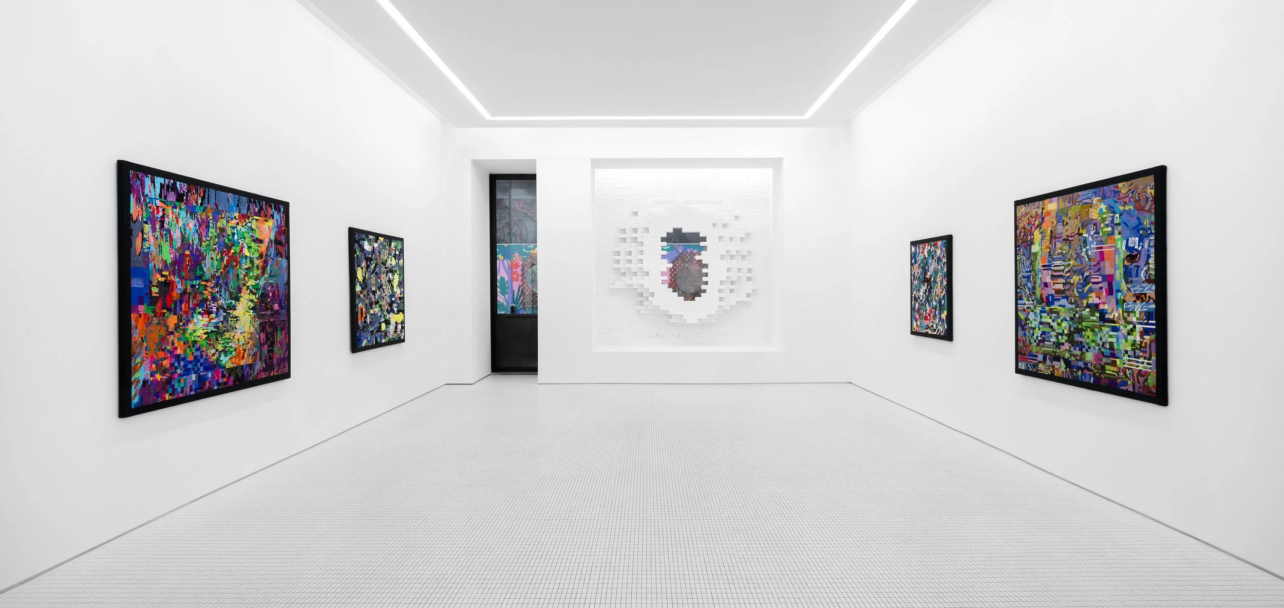 Kincaid’s work becomes both a reflection and a guide, charting a path through self-exploration, resilience, and the continuous process of becoming. In this way, the exhibition is as much an inward journey as it is an outward expression of mapping the unseen. Influenced by artists such as Anni Albers and Alma Thomas, and drawing inspiration from natural phenomena, meteorology, cosmic patterns, and digital aesthetics, Kincaid’s work is further enriched by the writings of Octavia Butler, Legacy Russell, and Salvatore Quasimodo. Through this confluence of visual and literary references, the artist offers a multilayered narrative that bridges the ancestral with the contemporary, and the corporeal with the cosmic.